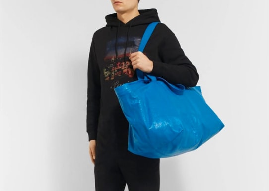 Несмотря на это, французский люксовый бренд Balenciaga выпустил линию сумок, выглядящих точь-в-точь как гигантский синил баул из IKEA.